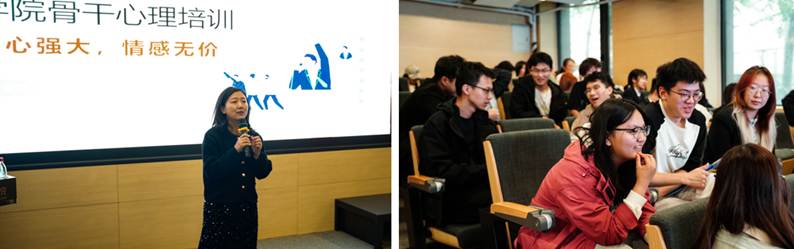 开班仪式结束后,学校心理素质教育中心刘倩老师为全体学员带来“一训”环节的首场讲座。她结合实际工作场景,指导骨干们学会如何组织班级活动、清晰定位自身角色,鼓励大家在服务同学时保持耐心与同理心,做到关爱自我、温暖他人,引导学生干部以积极的心态面对挑战,用共情来搭建沟通的桥梁,做有温度、有担当的新时代优秀学生干部。