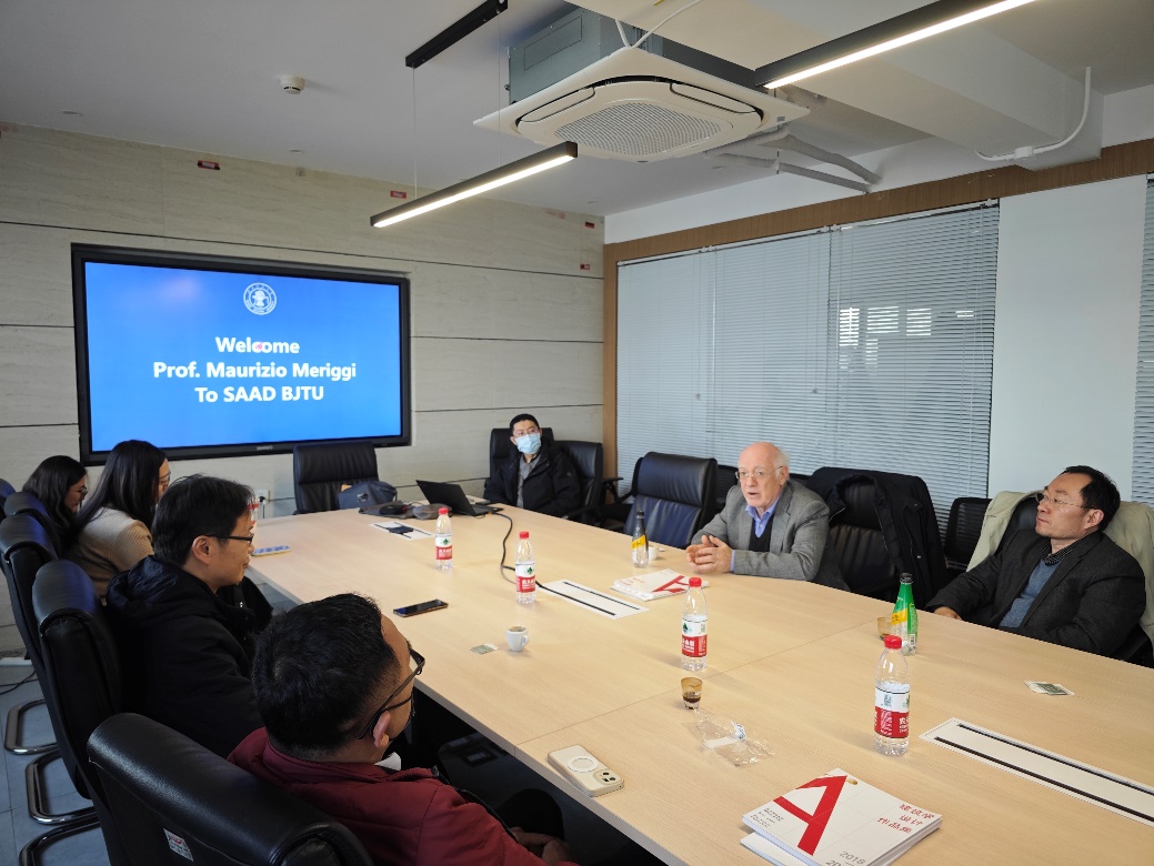副院长佘高红代表学院向MAURIZIO MERIGGI教授此次访问交流表示欢迎,希望可以与米兰理工大学建筑、城市规划和建造学院建立长期的教学、科研交流合作。系主任王鑫介绍了性吧 的发展历程、专业方向以及教学科研情况等。MAURIZIO MERIGGI教授感谢学院和韩林飞教授的盛情邀请,他曾多次到访我校,对于学院近几年的发展以及教学空间更新改造成果表示肯定,也分享了米兰理工大学建筑、城市规划和建造学院的近些年相关办学情况及个人在绿色城市、建筑遗产相关方面的研究情况,期待未来两校合作交流活动能够得到更近一步的推进和发展。