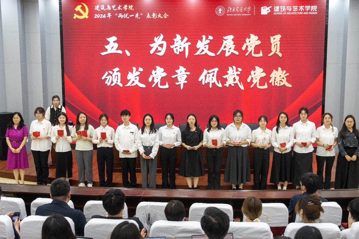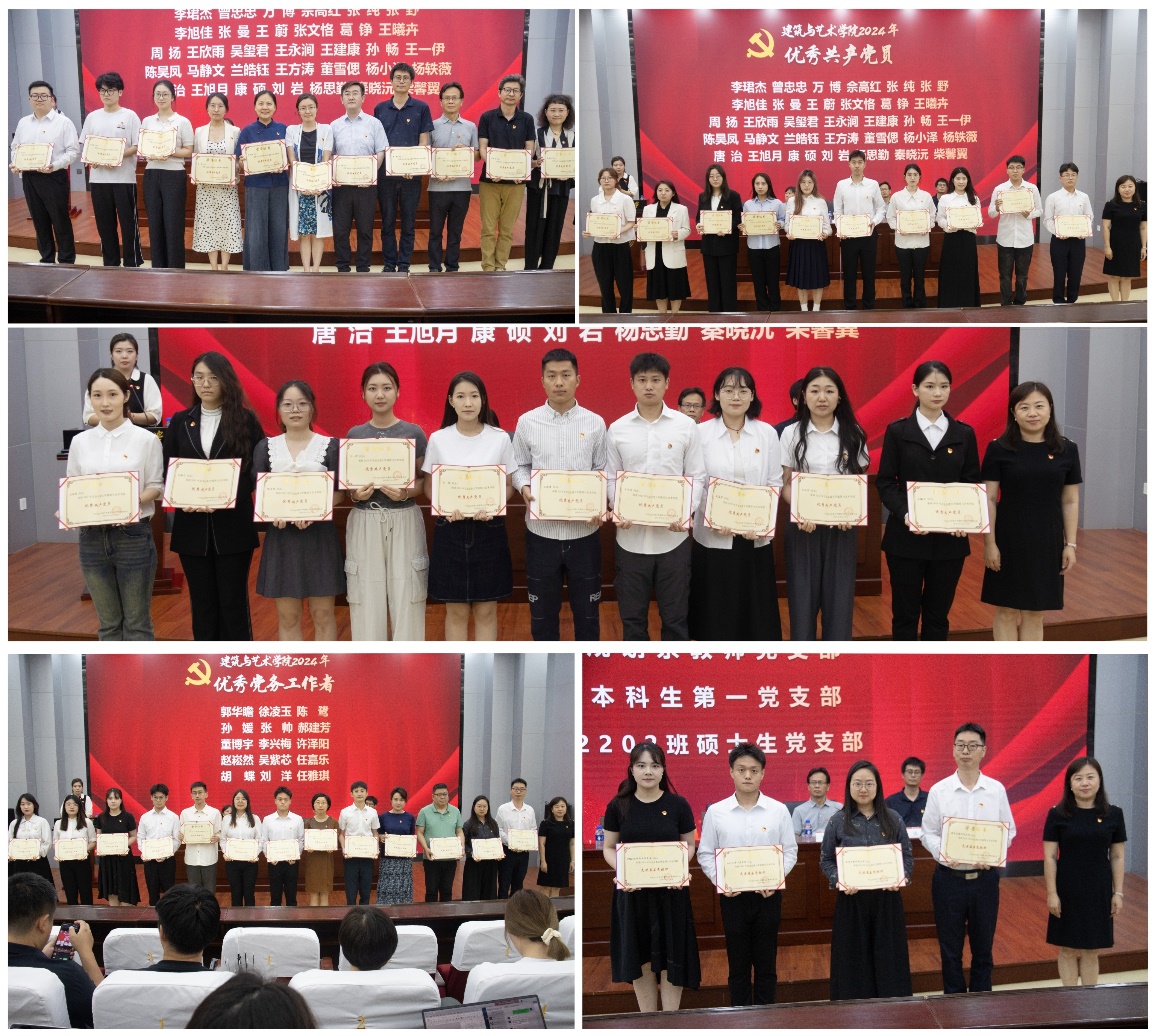 学院党委副书记刘萍宣读学院2024年“两优一先”表彰决定,授予设计系教师党支部李旭佳等33名同志为“优秀共产党员”,授予机关党支部郝建芳等15名同志为“优秀党务工作者”,授予本科生第一党支部等4个党支部为“先进基层党组织”。学院党委书记秦思阳为获奖集体代表和个人颁奖。
